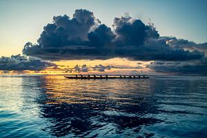 The horizon burned gold where the sun slipped through a break in the clouds, casting the racers in silhouette against a sky of fire and deepening blue. The world felt suspended, time held in the pull of the tide, the steady strokes of those who chase the water.