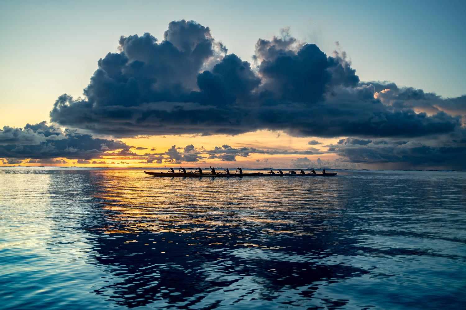 The evening light fades, and the ocean turns to glass. As I walked along the white sand of Tumon Bay, the warmth of the Pacific at my feet, I caught sight of a fleeting moment. Two outrigger canoes slicing through the still water, paddlers locked in rhythm, racing the last light of day.