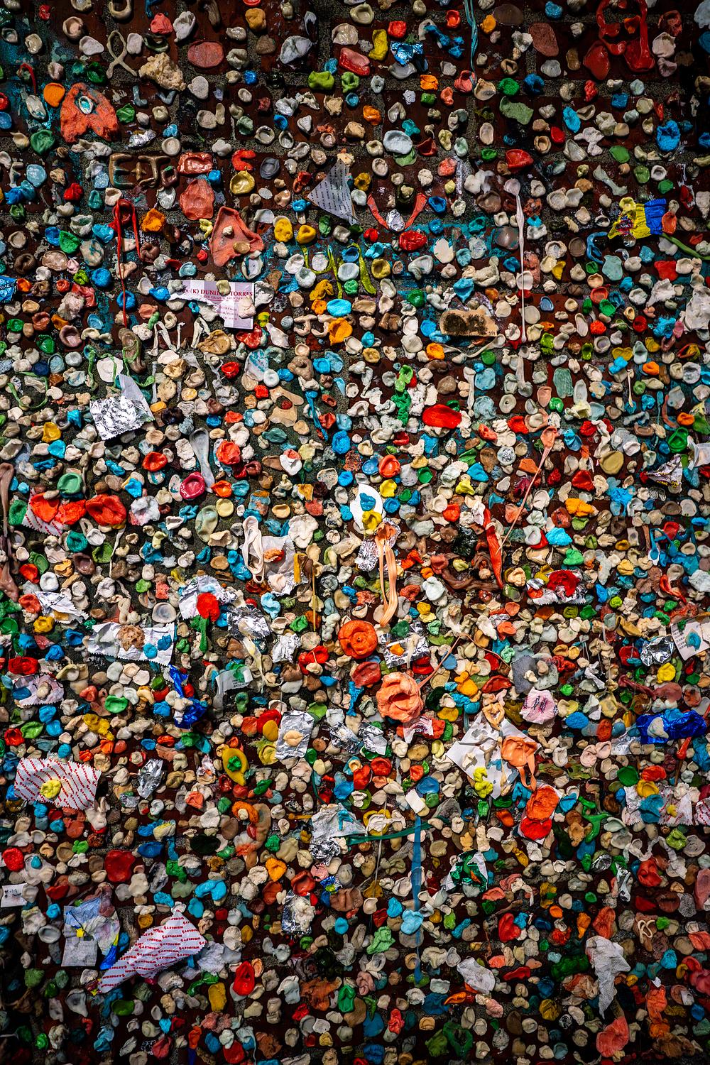 Tucked in an alley near Pike Place Market, Seattle’s famous Gum Wall is a chaotic mosaic of color, texture, and time. What began as a simple act of rebellion became an evolving art piece, layer upon layer of chewed-up history, pressed against the bricks. On this particular evening, something about the vibrant randomness made me pause. The glossy sheen, the clash of colors, the absurdity of it all, it’s strange, it’s iconic, it’s undeniably Seattle. Not much else to say, except… don’t eat the gum.
